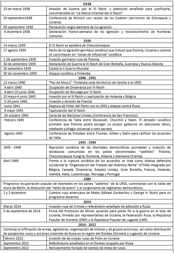 Los que así proceden entierran la memoria de los horrores que Europa vivió por no haber reaccionado a tiempo, por haber creído en los acuerdos con los dictadores de la época y no haber sabido prevenir sus invasiones y ocupaciones totalitarias.
