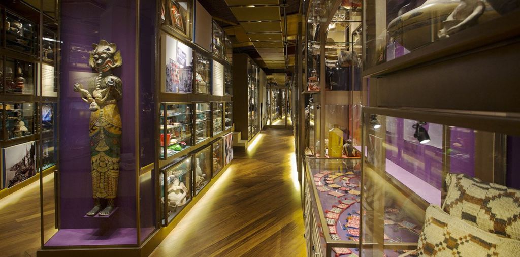 Sus vitrinas están organizadas por temáticas y reúnen objetos de varias culturas, en tal modo que reflejan substanciales convergencias a pesar de las distancias en el tiempo y en el espacio. Si bien hay algunas excepciones para colecciones especialmente abundantes, que proceden de expediciones históricas de exploradores y antropólogos.