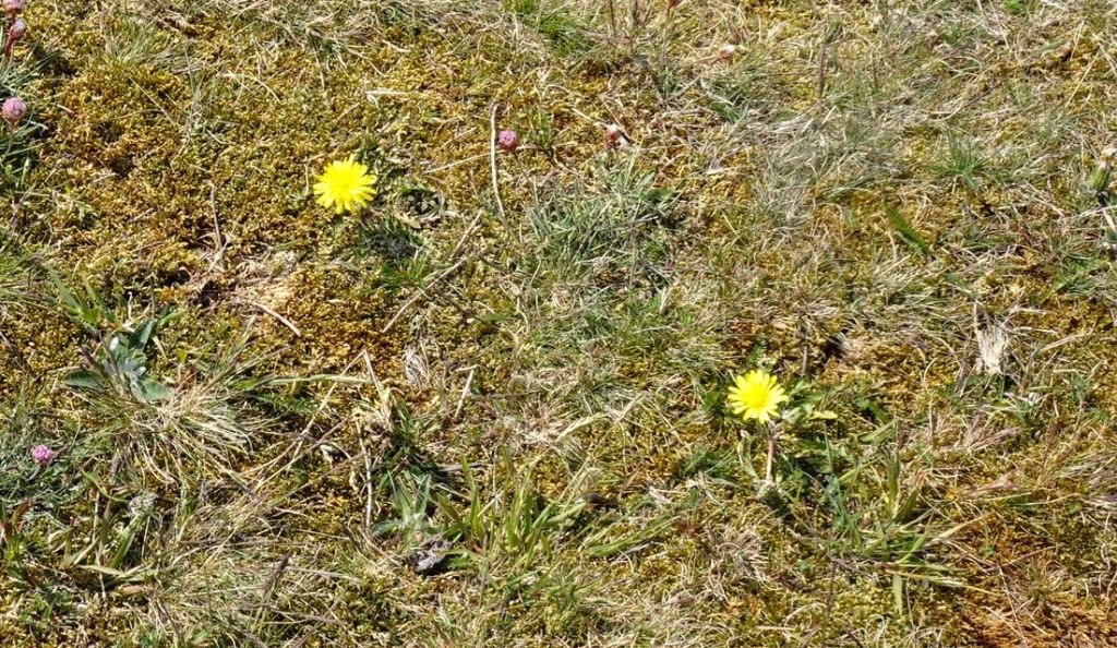 De la de nominación de la amarilla tengo dudas, así que, si hubiera quien lo sepa entre mis lectores, agradeceré la corrección. En cambio, la que en sueco llaman strandlejlika sí que me parece es la que en español llaman clavelina del mar, en latín Armeria maritima.