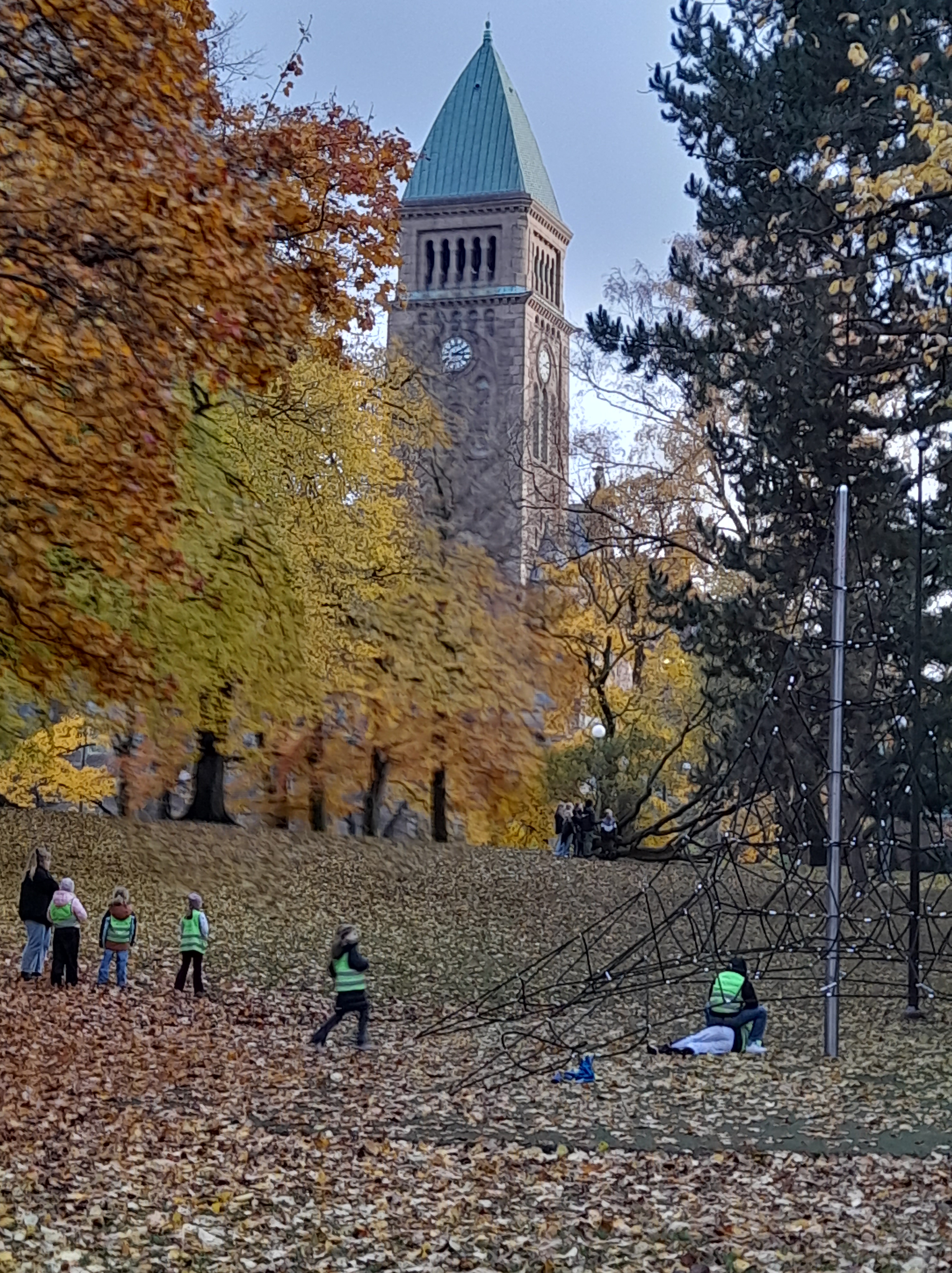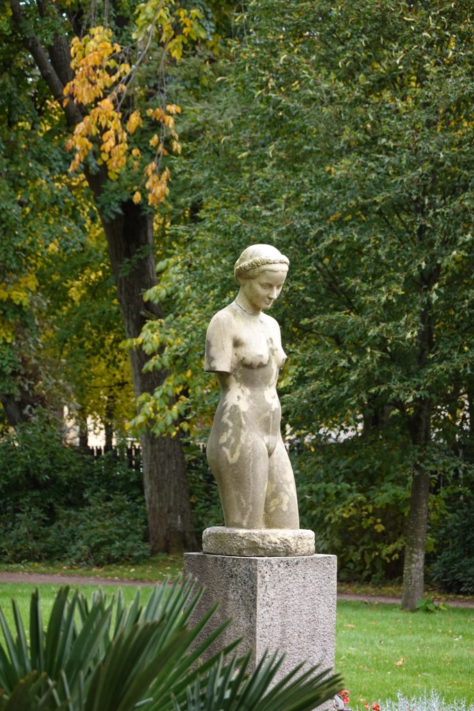Cerca de casa hay varios parques. A la entrada de uno de ellos, el de la «Sociedad de los jardines» (Trädgårdsföreningen) hay una escultura de la Primavera que pacientemente acepta al principio del otoño la paulatina invasión de las hojas moribundas.