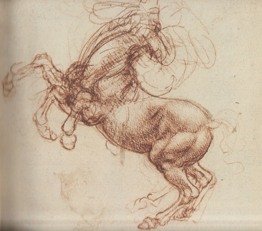 (****) El «rearing horse» es uno de los bocetos de caballos de la colección del Windsor Castle que Leonardo dibujó para el enorme cuadro, no acabado y hoy desaparecido, de la Batalla de Anghiari.