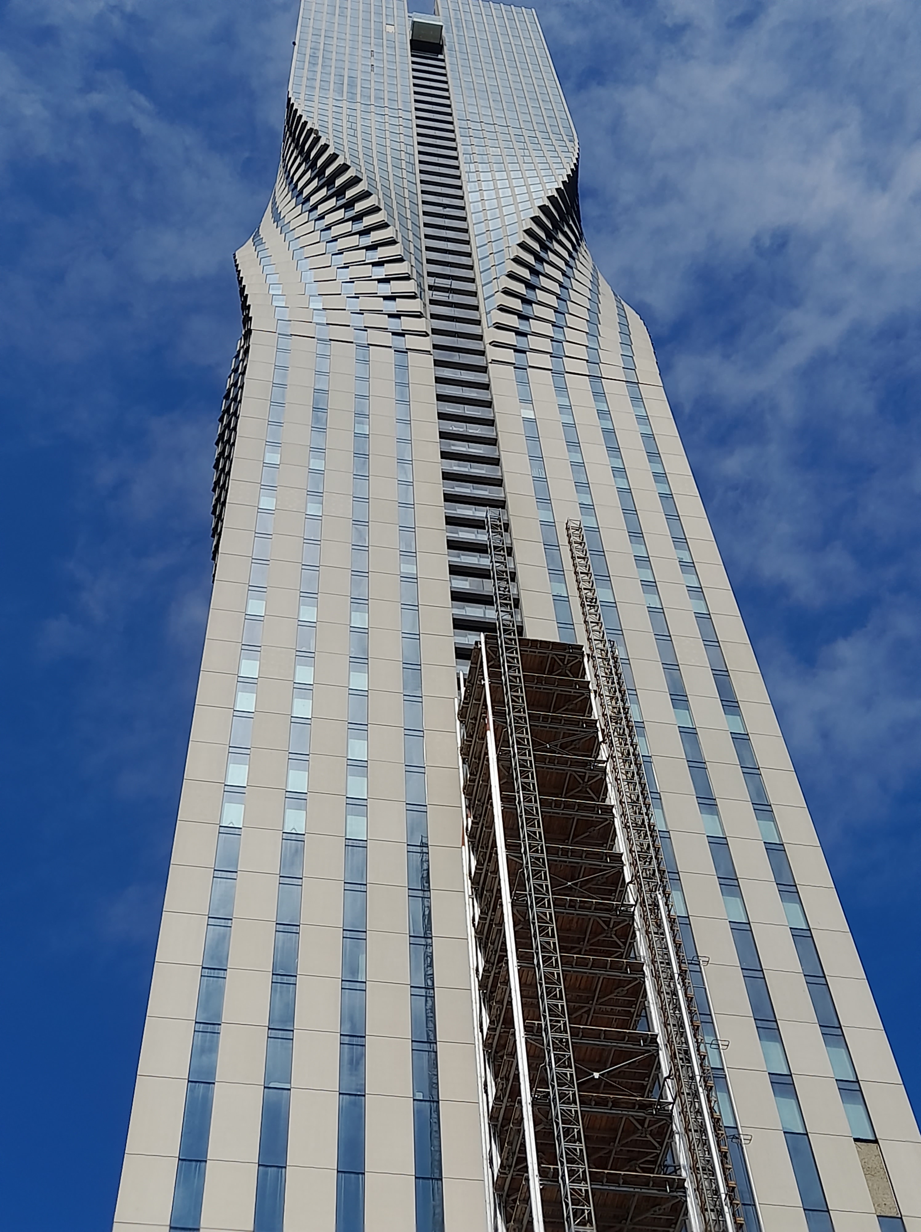 lo que contrasta con la mole ceñuda de la Torre Karla que está en fase de terminar su equipamiento y que ensombrece con su coraza de guerrero galáctico el skyline de Gotemburgo cuando la mirada se dirige desde el centro de la ciudad y sus barrios aledaños hacia el norte de la ría.