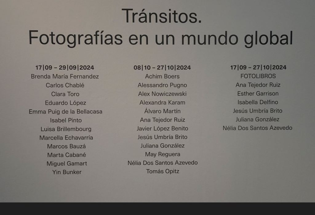PhotoEspaña 2024, Foto de Isabel Pinto (Portugal y Sudáfrica), Quelle heure est-il au paradis.PhotoEspaña 2024, Foto de Clara Toro (Colombia), El patio de mi abuela (en Miami).PhotoEspaña 2024, Fotos de Emma Puig de la Bellacasa Mejía (España – Panamá), Proyecto Mujer árbol.PhotoEspaña 2024, Foto de Miguel Gamart (España). Cielo abierto, en la mina de Corta Pastora, LeónAlgunas de las fotógrafas de PhotoEspaña 2024, en su exposición en el Centro de Arte de Alcobendas.Asistentes a la inauguración de PhotoEspaña 2024 en el Centro de Arte de AlcobendasArtistas participantes en PhotoEspaña 2024 en el Centro de Arte de AlcobendasEl fotógrafo mexicano Carlos Chablé en PhotoEspaña2024 en el Centro de Arte de AlcobendasPhotoEspaña 2024, Foto de Carlos Chablé, Tengo a San Antonio puesto de cabeza…