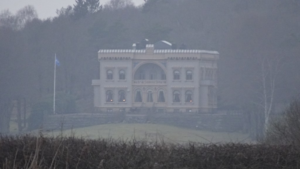 percibiremos en lontananza, en la Reserva Cultural de Gunnebo, la fachada de la Villa Denninghoff. Este edificio de corte romántico alemán es hoy la sede de representación de la empresa SKF y fue construida como residencia de verano del rico importador decimonónico de productos de las industrias alemanas, británicas y estadounidenses hacia Suecia, el alemán nacionalizado sueco Wihelm Denninghoff (1832-1905) cuando el futuro industrial sueco era inimaginable.