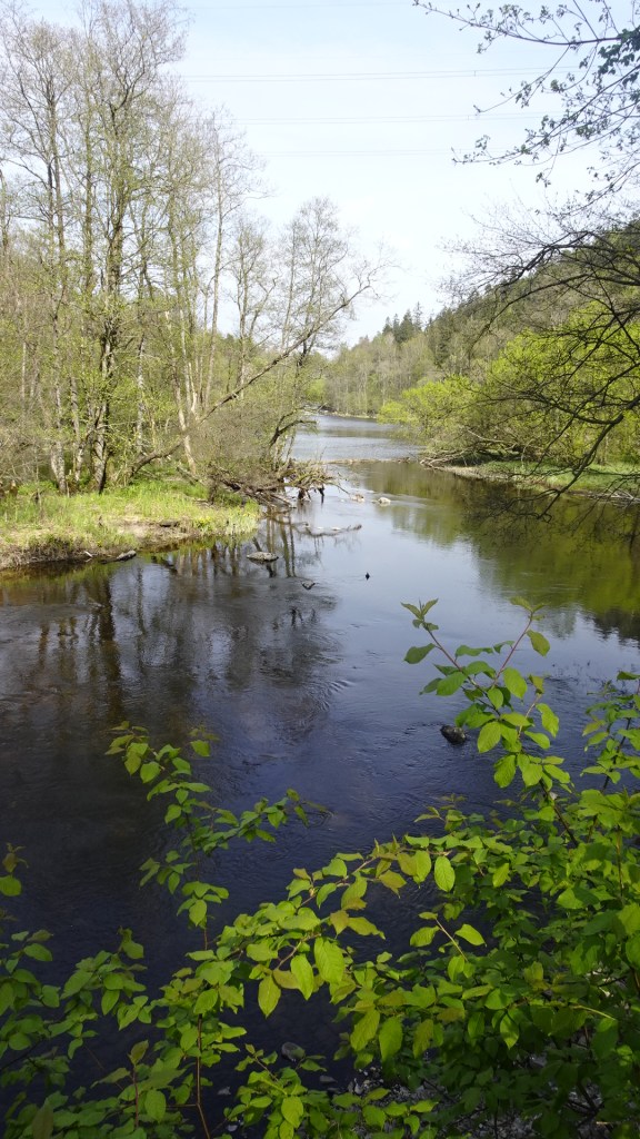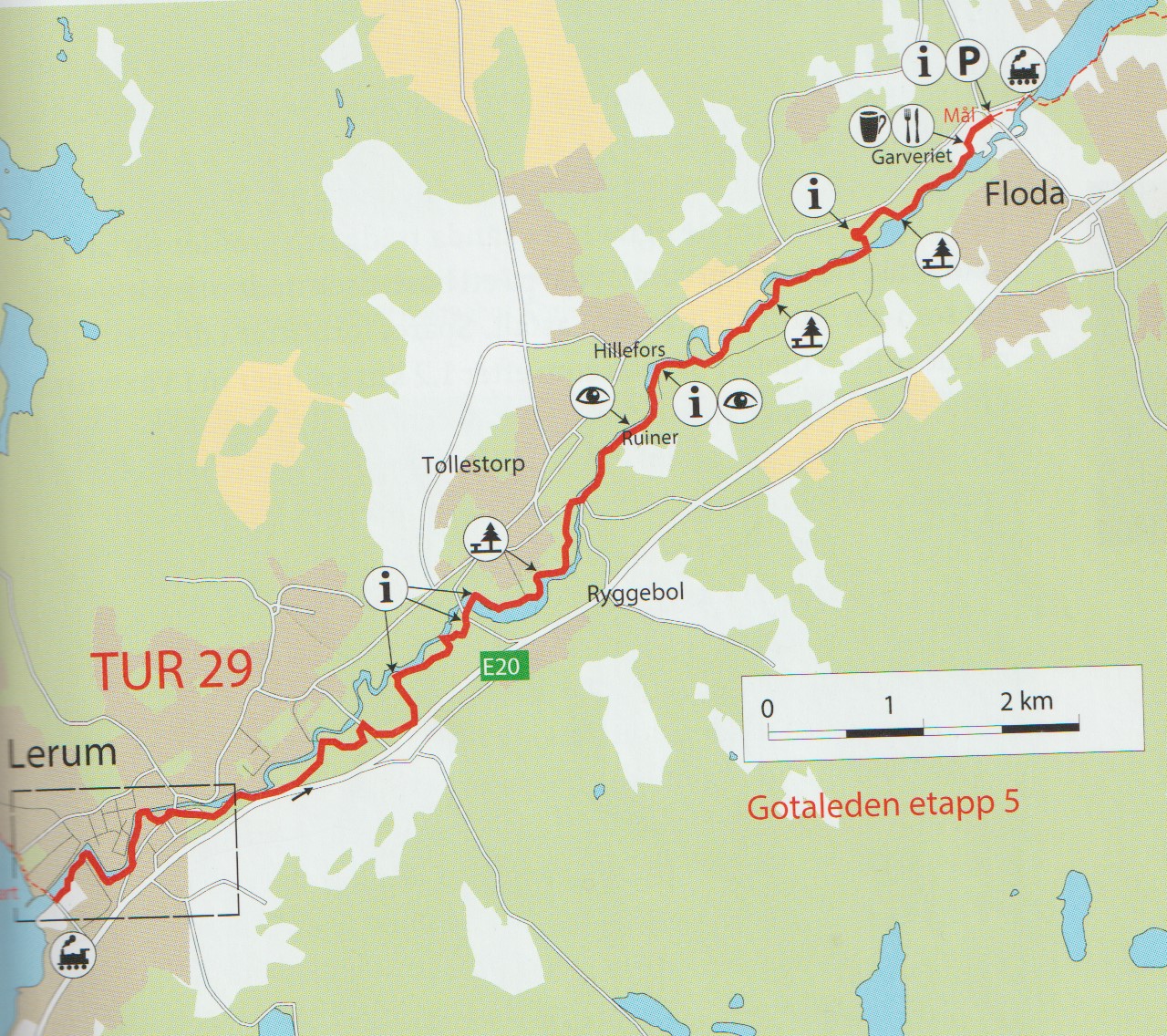 El 1º de mayo el sol y las temperaturas benignas animaban a dar un paseo, esta vez por las márgenes del Säveån, a veces calmado como un lago y otras rápido como un torrente. Partimos de la estación de tren de Floda en dirección a Lerum, tomando el sendero del Gotaleden («camino de los godos»).