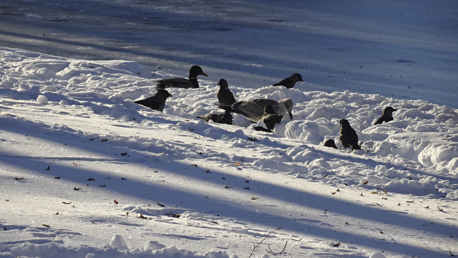 y gaviotas, grajos y patos no tienen energía para sus rencillas.