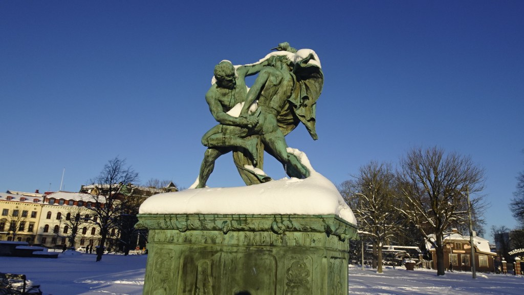 Hacía años que la nieve no era tan generosa y tan temprana en Gotemburgo, años que los niños no sacaban sus trineos por las calles. Primeros días de enero y este es el aspecto que ofrece ahora el parque cercano.