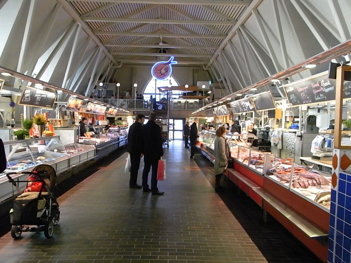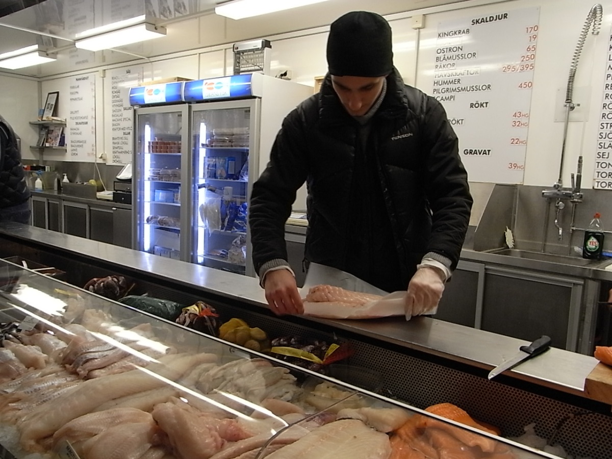 (*) En la plaza del pescado (Fisktorget), frente a la “iglesia del pescado” (Feskekôrka en sueco dialectal) estaba hasta hace unos meses el mercado de pescado más antiguo de la ciudad de Gotemburgo. El edificio ya no albergará más las pescaderías más populares de la Costa Oeste. Decisiones urbanísticas vinculadas a las obras del Västlänken han concluido con su desaparición permanente del interior de este que ha sido «el templo del pescado» desde 1910.
