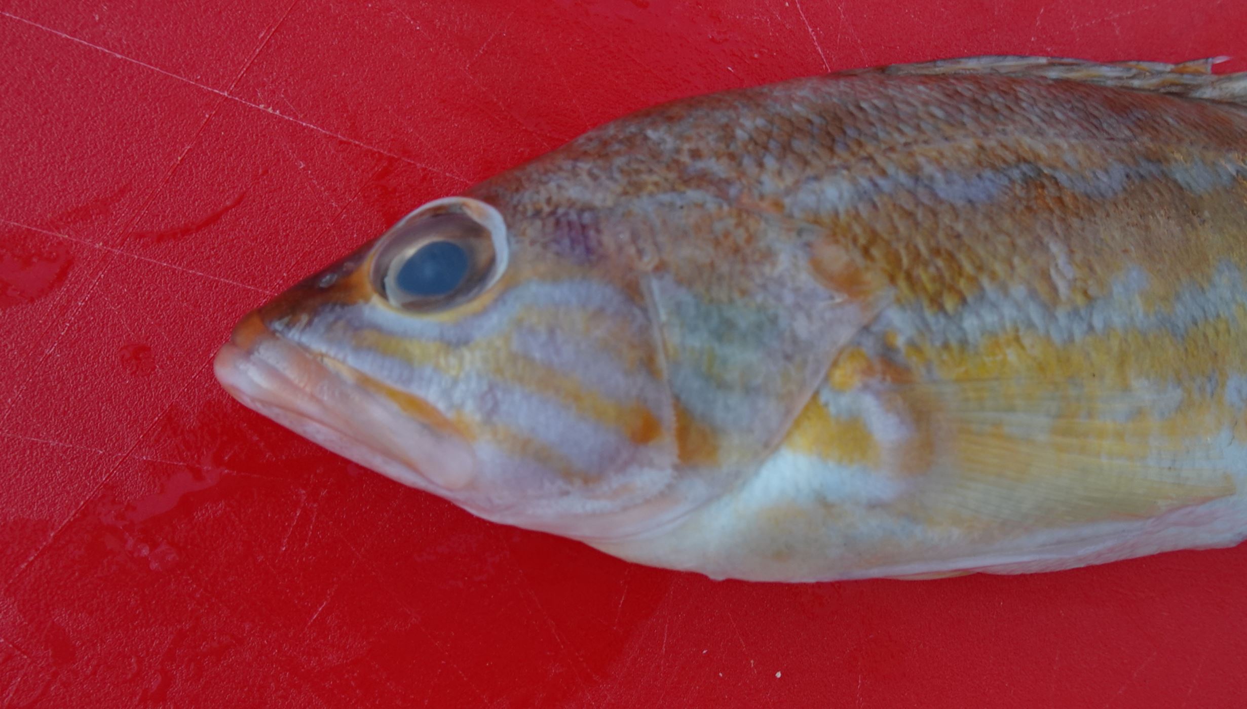 A este otro se le quedó cara de decepción cuando fue secuestrado mientras su cardumen ejecutaba una armoniosa coreografía submarina. Ya en la red se dio cuenta de la heterogénea plebe que le rodeaba cuando ya los pescadores estaban por alzarla. Probablemente este aspirante de aristócrata tenía planes para el futuro.