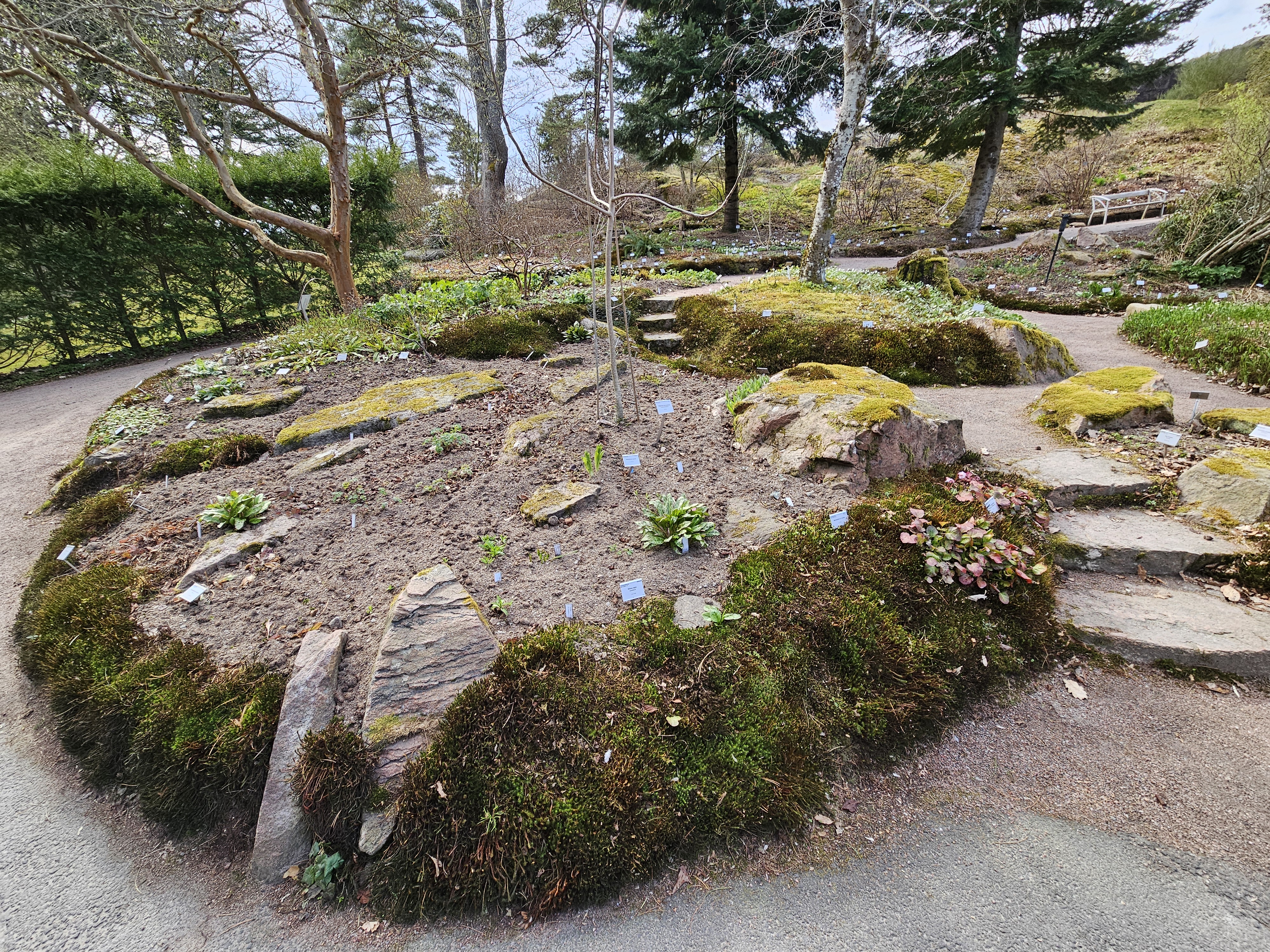 Al otro lado del sendero, los jardineros han estado trabajando con aportes de tierra sobre las cuales han plantado jóvenes brotes de especies escandinavas.