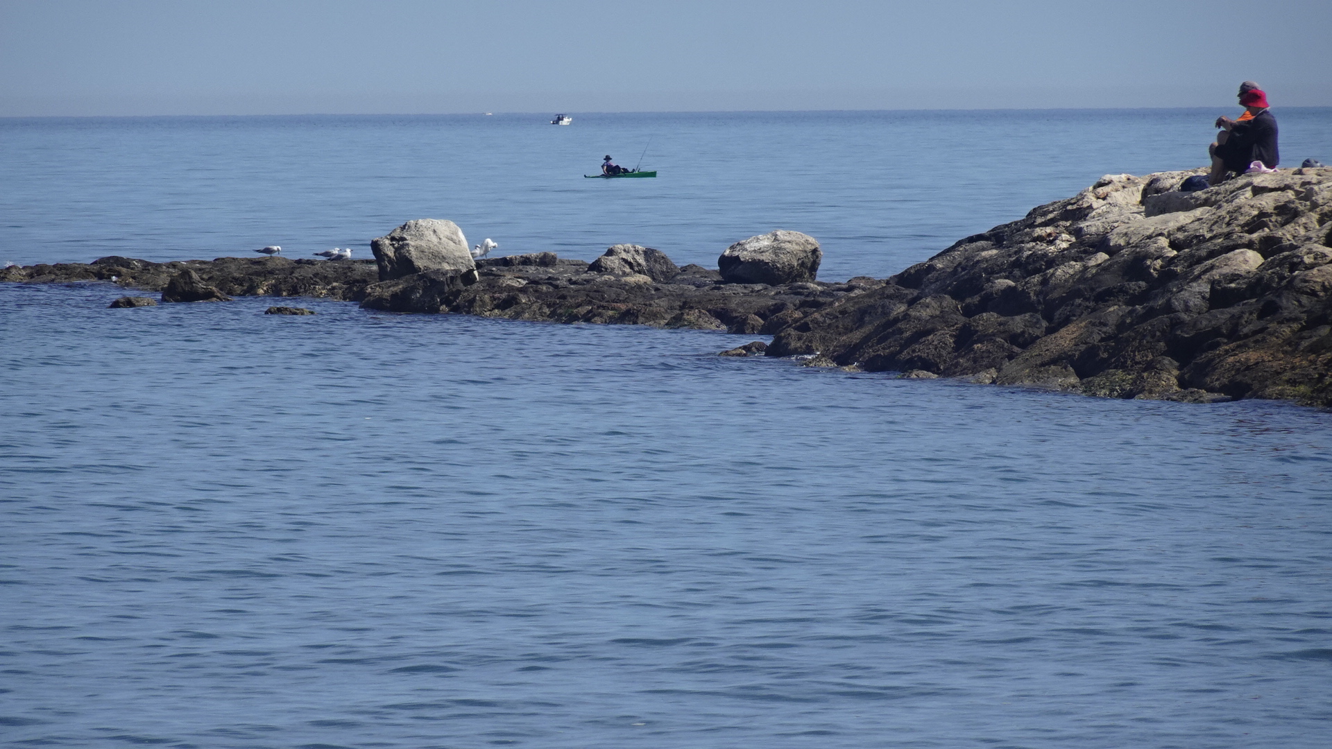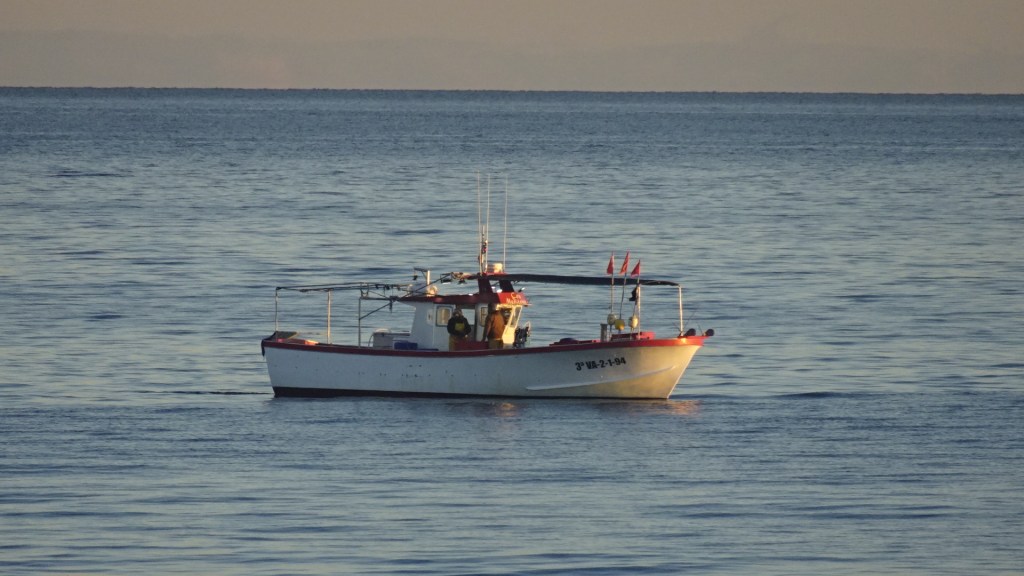 Al amanecer algunos pescadores que han zarpado todavía de noche faenaban frente a mi orilla