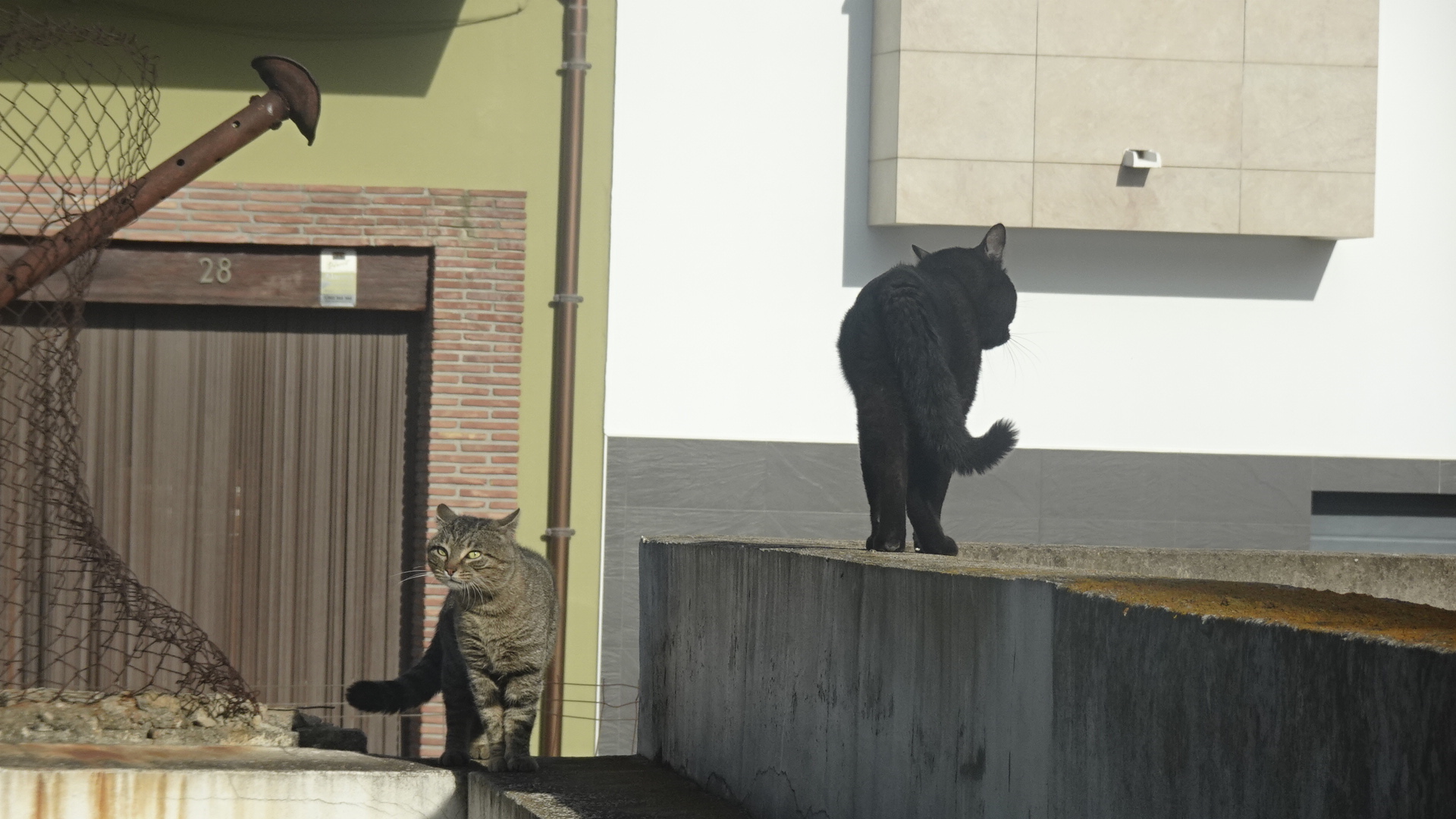 mientras el felino de la esquina se pone en movimiento, pienso que para cerrarle el paso, aunque está maullando de forma insistente desde hace un momento…