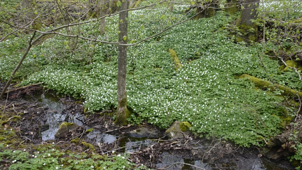no sin antes asomarnos a la quebrada de las vitsippa (anemona nemorosa) primeros brotes de florecillas blancas del bosque en primavera…