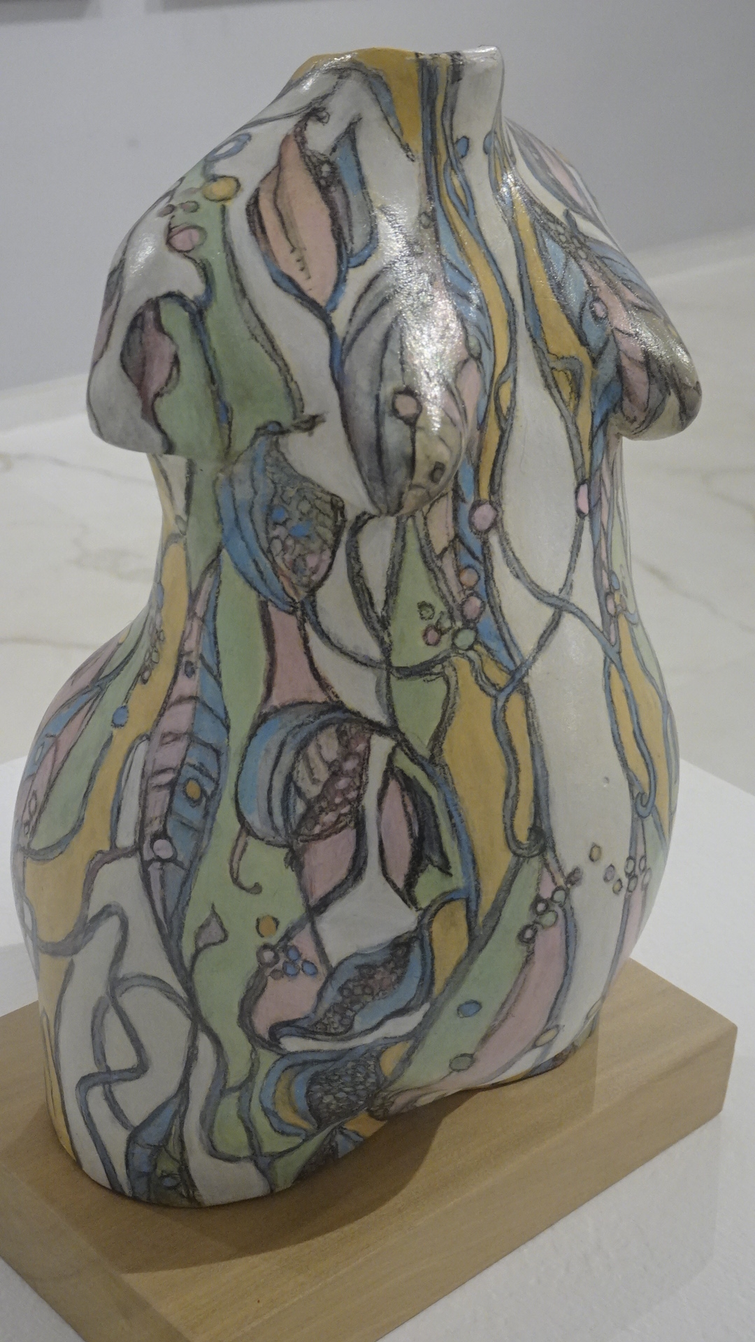 A esta obra del artista del barro, Correa, se incorpora el aporte de una piel de exuberante trama vegetal, pintada al acrílico por Santacreau