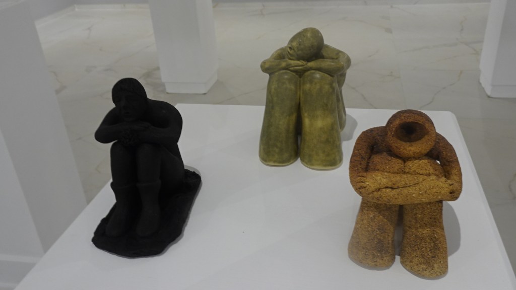 José Correa: «Sin esperanza», Gres, 2025, 15×10 cm; «Introspección III», Gres y esmalte, 2021,15×10 cm ; «Introspección III», 2020, Gres y óxido, 13×10 cm. Foto R. Puig
