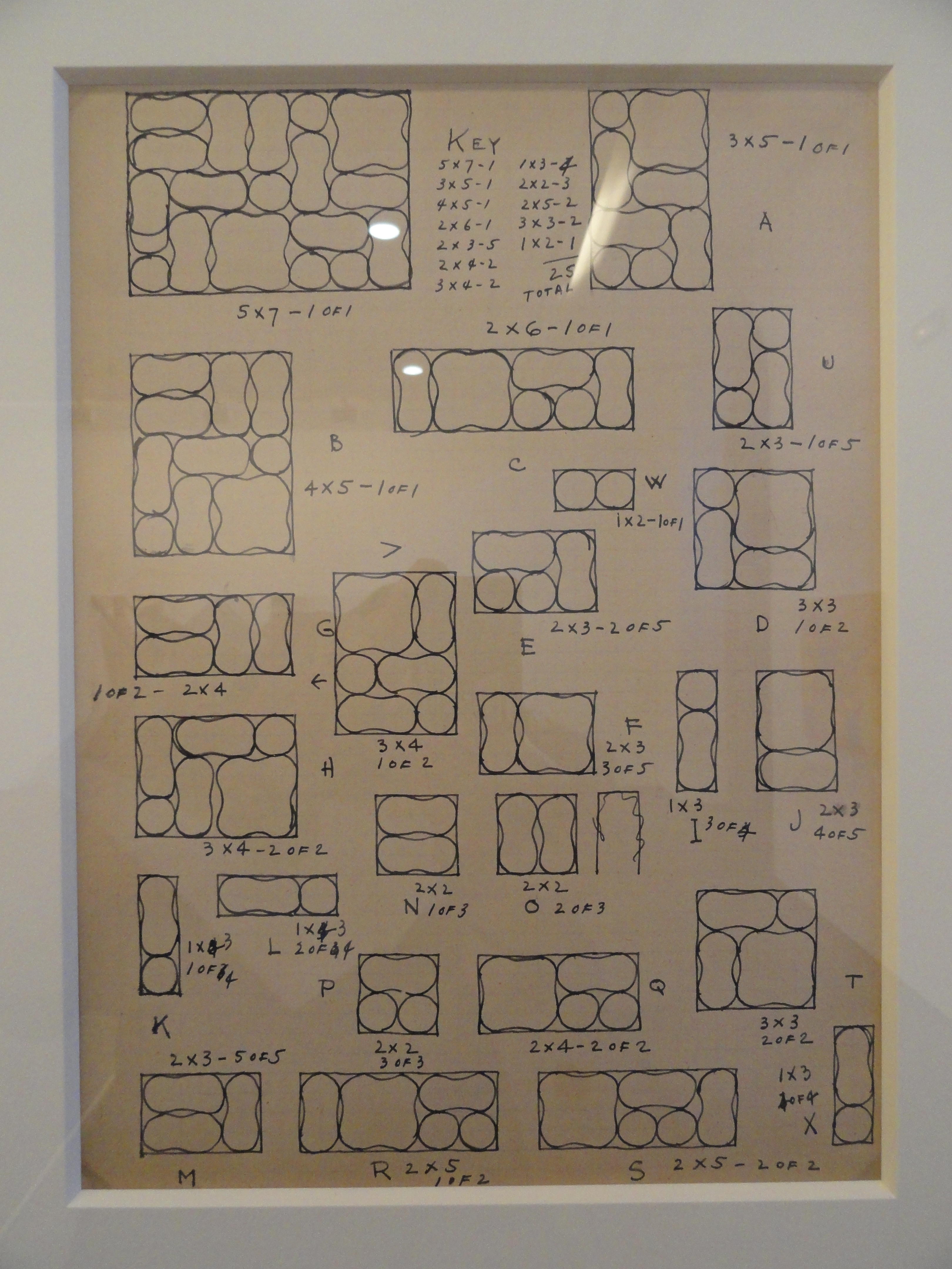 Combinatoria a partir de tres formas básicas de la Serie Louisenberg. Dibujo deTony Smith. Toulouse Les Abattoirs. 2013.Foto R.Puig
