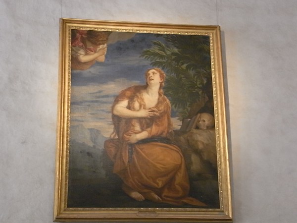Pero pasan de un salón a otro, sin que nadie les muestre un lienzo de Veronese que cuelga sobre la puerta, y que a mí me hace pensar que si María Magdalena, en vez de tantas piedras para darse golpes de pecho en el desierto, hubiera tenido a mano unas tijeras y algunos rollos de papiro, no sólo se habría cortado el pelo, sino que habría inventado el arte psaligráfico antes que los chinos