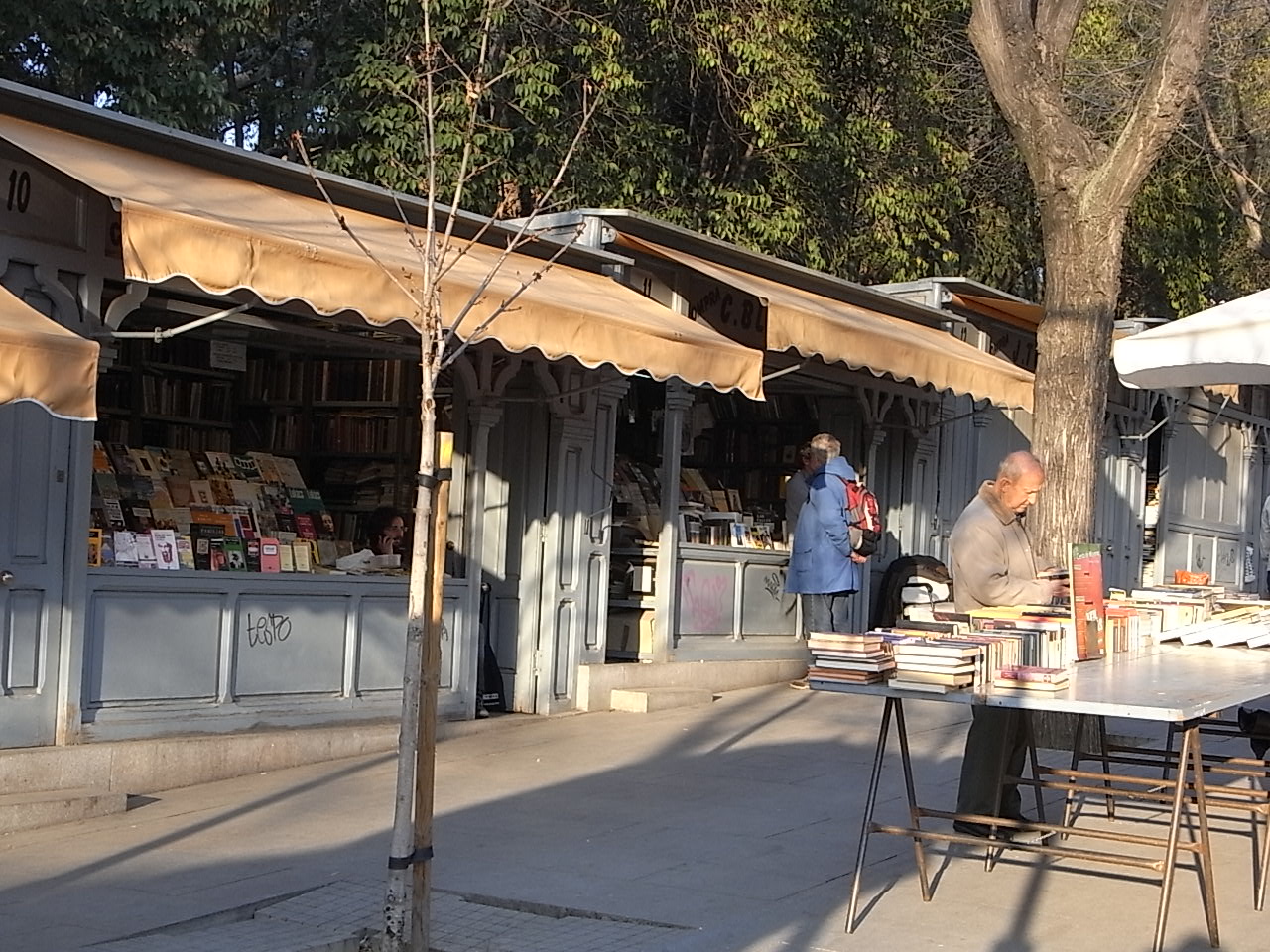 Acabamos el paseo por Madrid en la cuesta del Moyano (calle Claudio Moyano), lugar de algunos de mis recuerdos y hallazgos bibliófilos, que hoy añade el encanto de estar cerrada al tráfico.