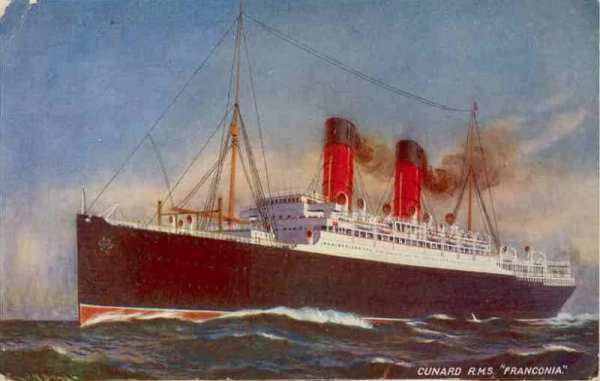 La postal de época representa al “Franconia”, otro transatlántico de la misma naviera del “Samaria”, buque muy parecido de la Cunard Line, del que desembarcó en Nueva York Jardiel Poncela.