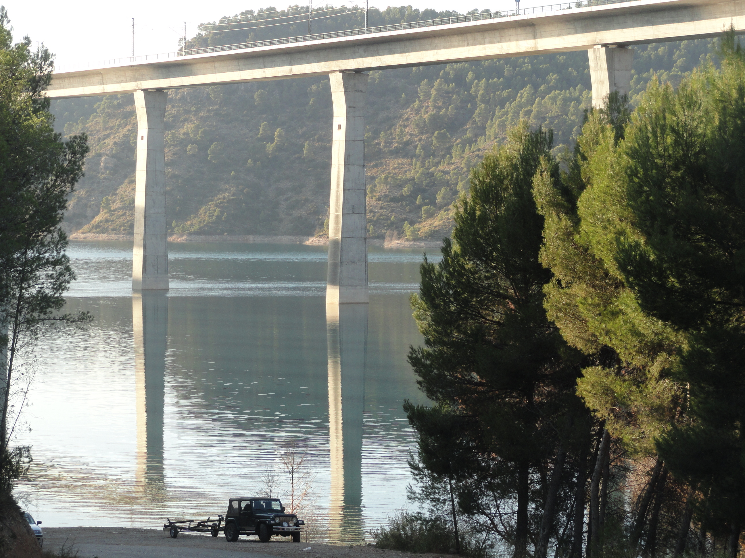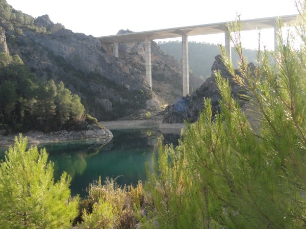 Entrando ya en tierras valencianas y saliendo de Castilla la Mancha la autovía circula sobre altísimos viaductos para sortear las varias colas del pantano de Contreras. Esta vez, en mi viaje desde Madrid, la tarde era fresca y soleada e invitaba al desvío.