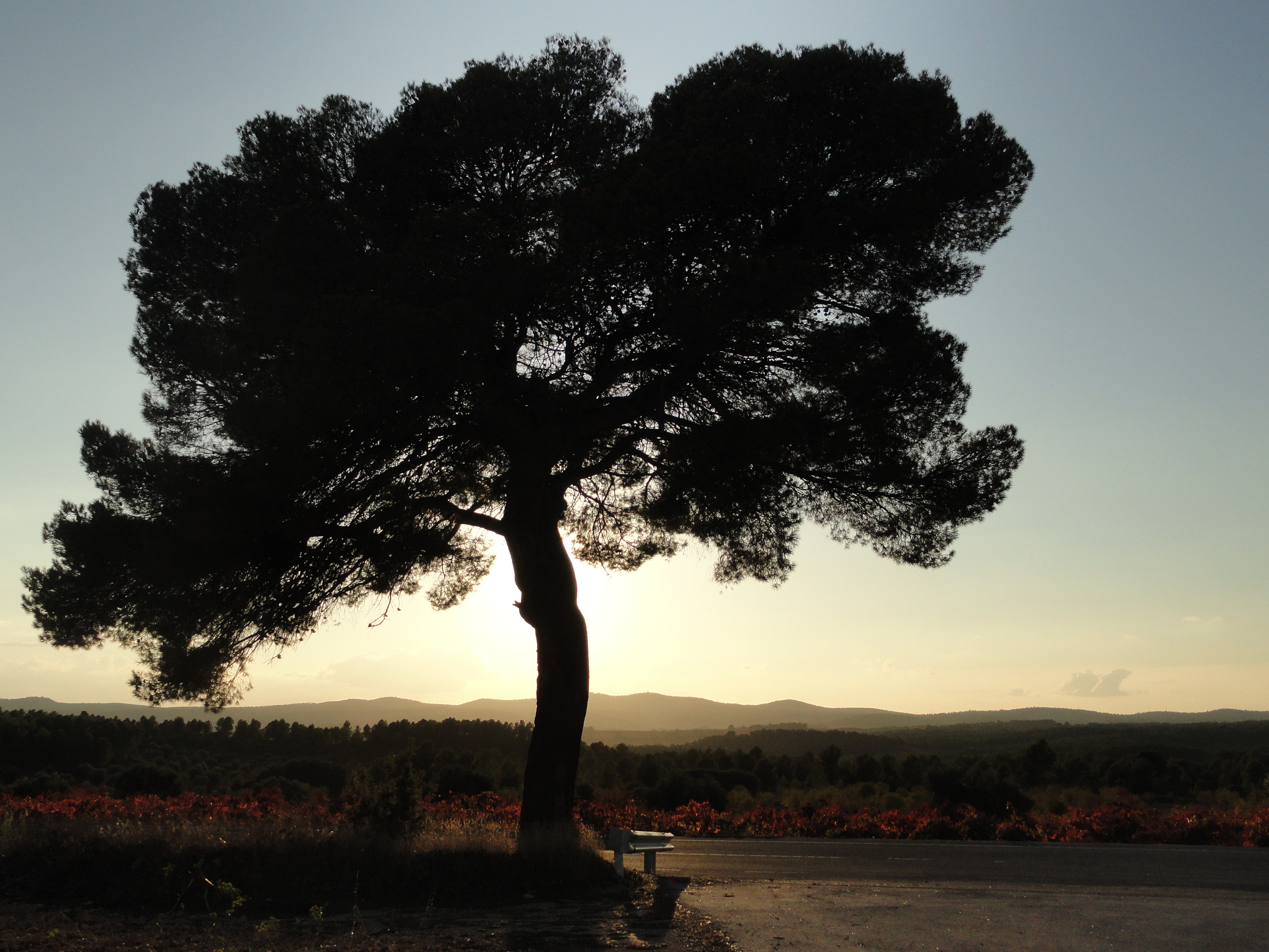 El atardecer nos está alcanzando y, tras admirar un viejo árbol que un sol moribundo carboniza, retomamos la carretera en dirección de Valencia, no sin sentir toda la magia de las tierras cárdenas y los viñedos incendiados de las tierras de Utiel