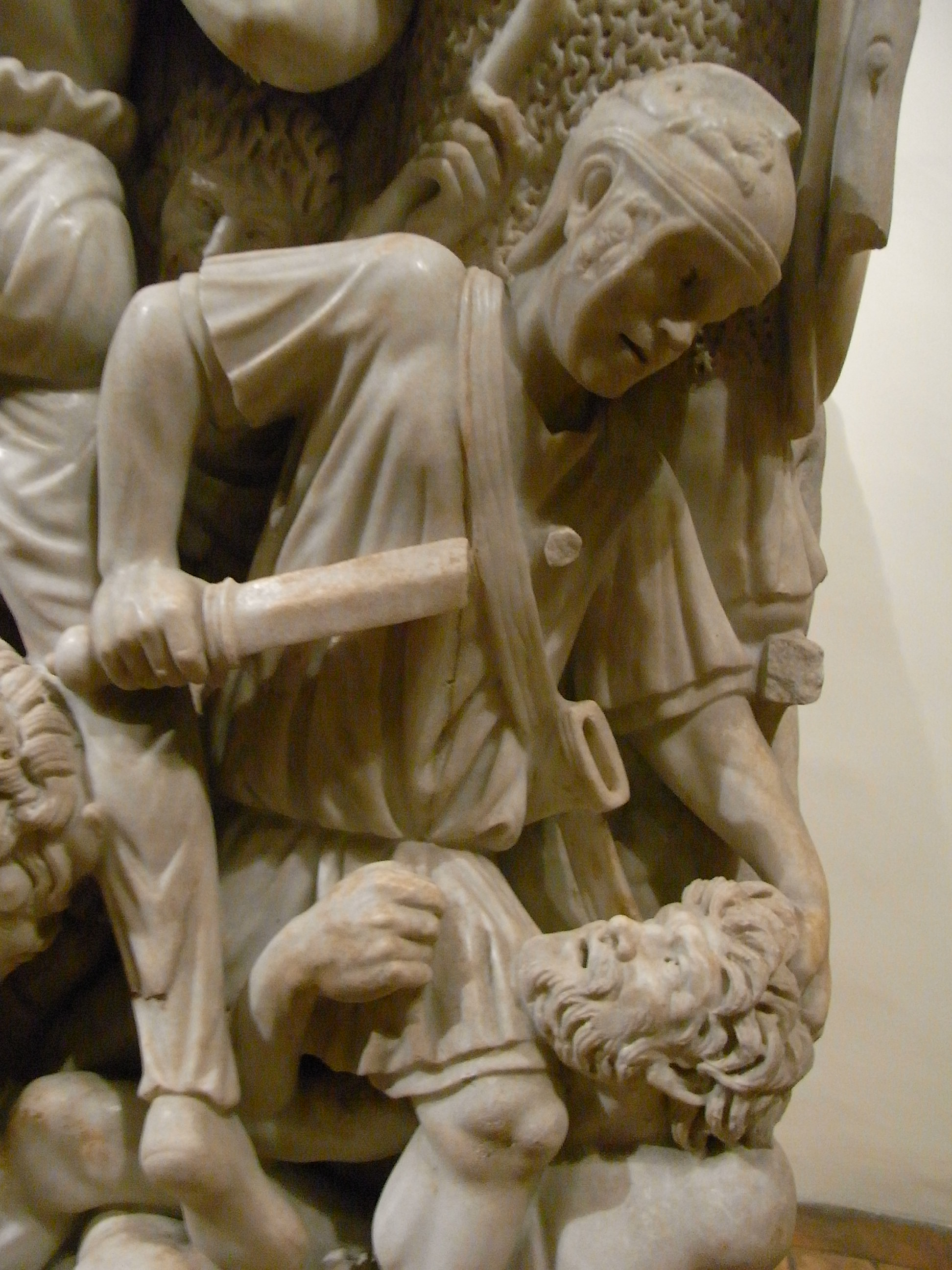 Por eso os regalo mi foto de un admirable fresco anónimo del siglo XVI que preside la Capella Marciac en la iglesia de la Trinitá dei Monti, ya sabéis, la que se encarama sobre las escalinatas de la Plaza de España en Roma. Si se mira con atención, en el paisaje del fondo se aprecia una curva del Tíber, las torres de la Roma medieval (que las tenía innumerables) y el frontón de un templo.