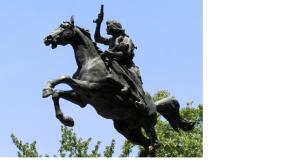 A Garibaldi le tocó escapar cuesta abajo y en retirada ante el asalto final de las tropas imperiales, acompañado por su mujer Anita en avanzado estado de gestación, no sin haber ofrecido una feroz resistencia que sembró la colina del Gianicolo de garibaldinos muertos. En la estatua, bajo la cual yacen sus cenizas, la audaz brasileña, mujer de Garibaldi, está representada a caballo, pistola en mano y con un niño en brazos. En realidad debería sustituirse el bebé por un vientre de embarazada.