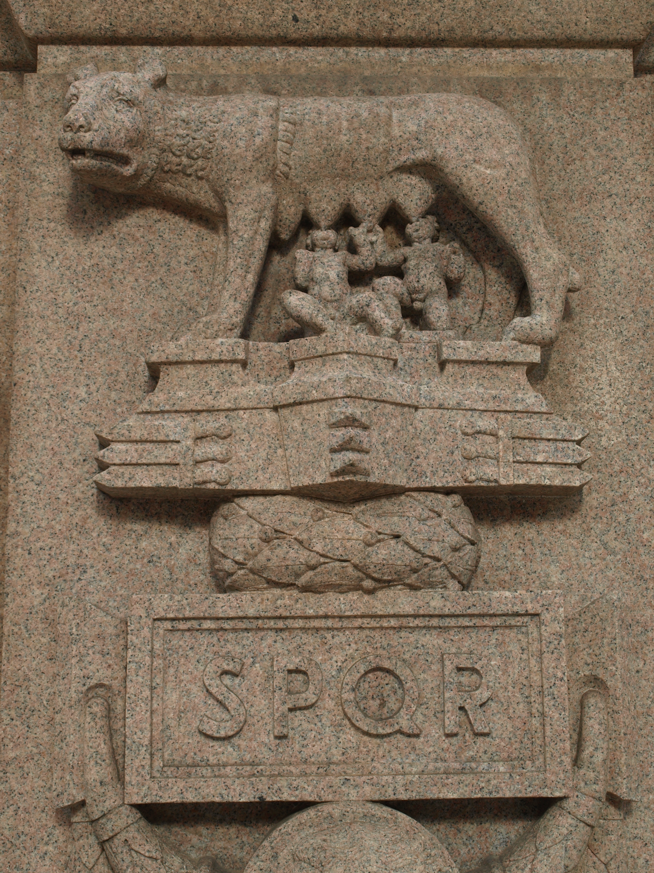 Por cierto que la loba romana del mausoleo parece estar muy molesta con Rómulo y Remo, esos dos mamones que cuelgan insaciables de sus ubres. El gesto de su boca es sumamente expresivo de la mastitis que le están causando.