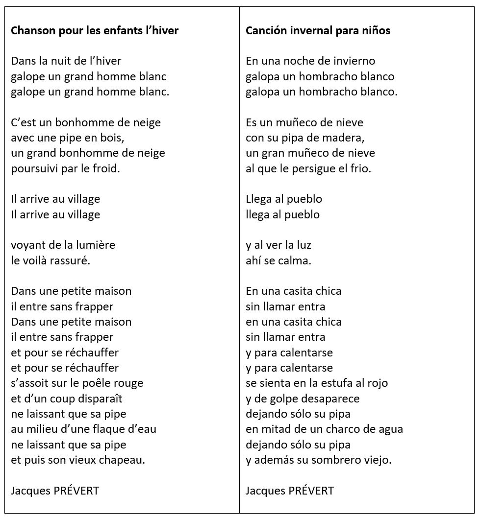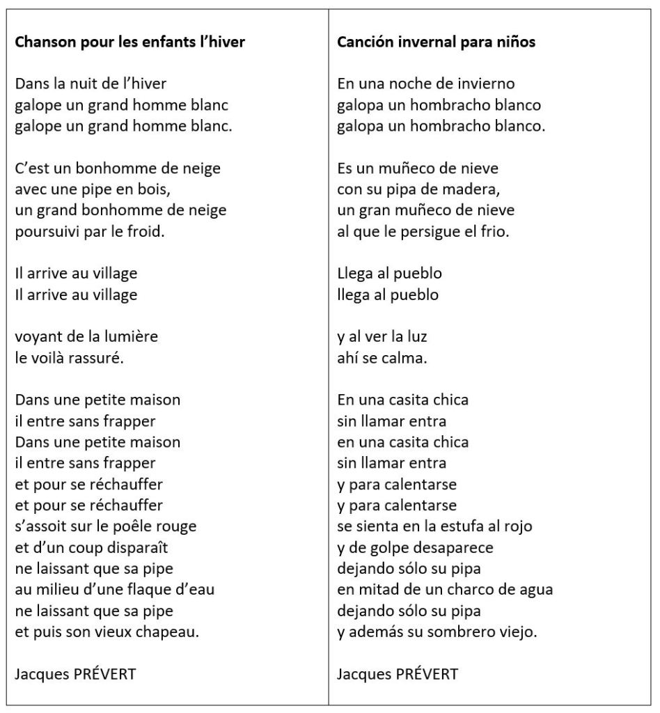 Así que he traducido para chicos y grandes una popular poesía de Jacques Prévert, de alegre ritmo, que como podéis aquí comprobar se puede muy bien cantar