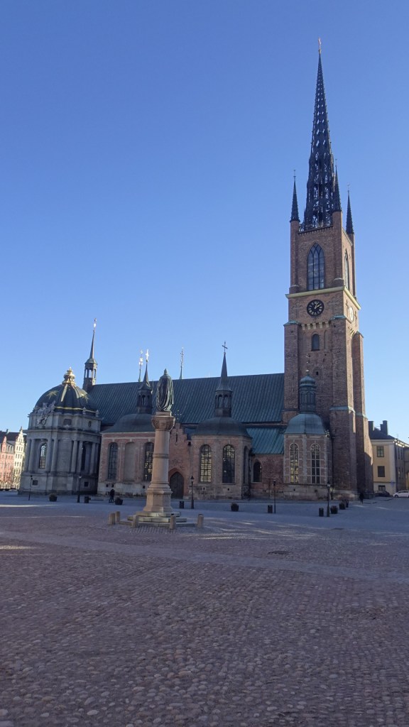 De vuelta a los canales nos adentramos en la plaza de la Riddarsholmens kyrkan, iglesia medieval donde están enterrados los reyes y regentes de Suecia desde 1630, además de dos monarcas feudales: Magnus Ladulås (1240-1290) y Karl Knutsson Bonde (1408-1470).
